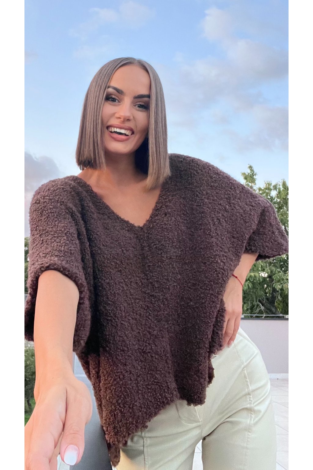 Šírka svetra cez prsia: 71 cm